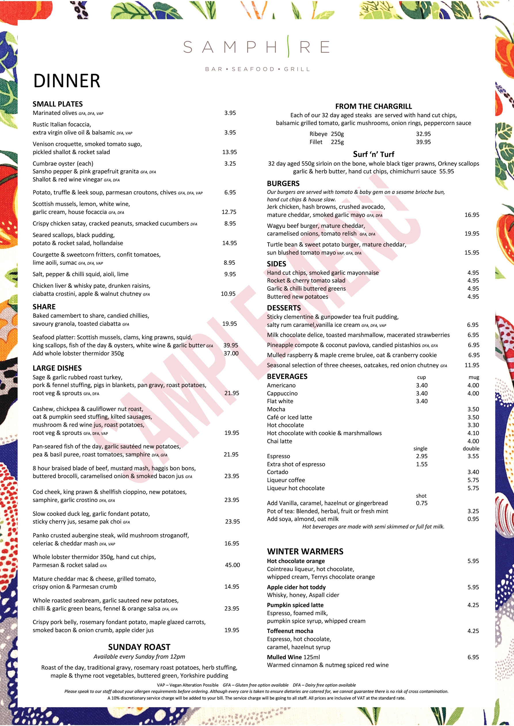 Quality ingredients create fine flavour combinations. Selecting only the finest meat, fish and seasonal vegetables, our menus are packed with flavour. Samphire is an elegant restaurant bustling with flavour and life…
